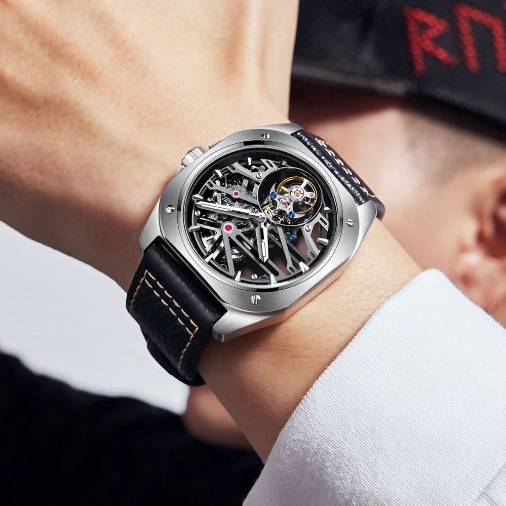 AESOP 7067 Luxury Mens Tourbillon Watch. Skeleton, Leather , Mechanical.