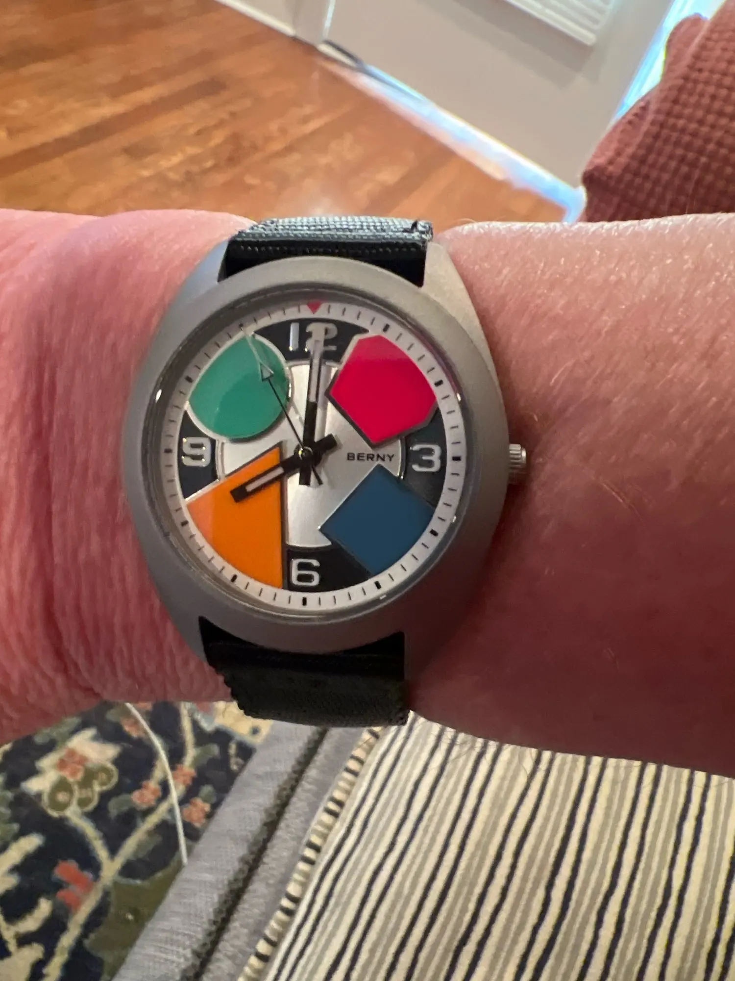 This watch is so nice! The dial colors are vibrant, the line is really fun, and it’s so light. You almost forget you’re wearing it. Receiving a photo of my actual watch before it shipped was a very nice surprise. Kudos to berny for an outstanding product and superior service!
