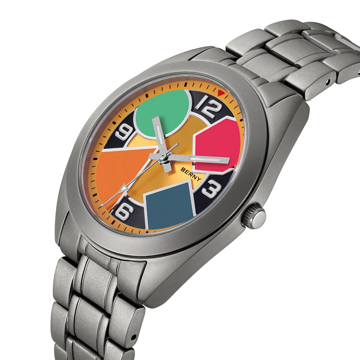 Buy BERNY Titanium Watch For Men AR Coating Sapphire Contrasting Geometric Dial Multi-color Luminous Canvas Titanium Watch For Men