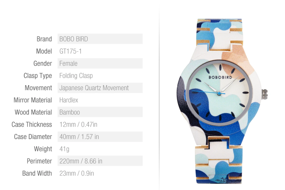 Buy BOBOBIRD Women’s Wooden Wristwatch Artistic Ladies Bamboo Quartz Watches Unique Illustration Eco-Friendly Timepieces for Women
