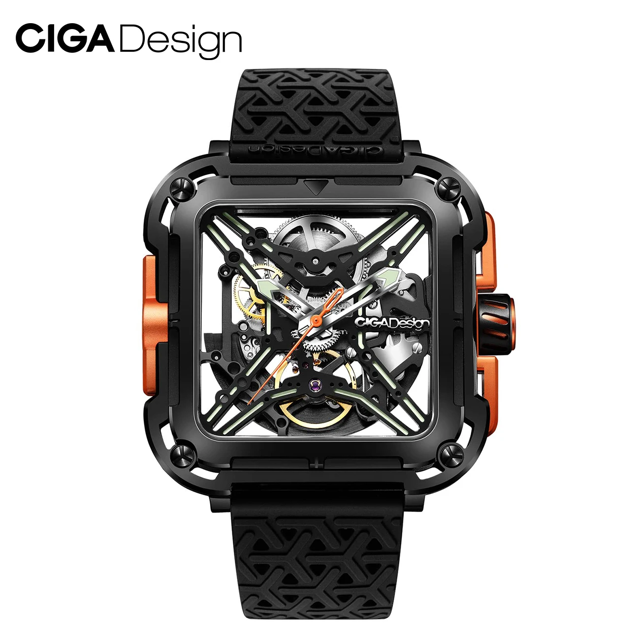 CIGA Design Square Skeleton Automatic Men’s Watch. X Series SUV Luminous Anti-shock Mechanical Wrist Watch