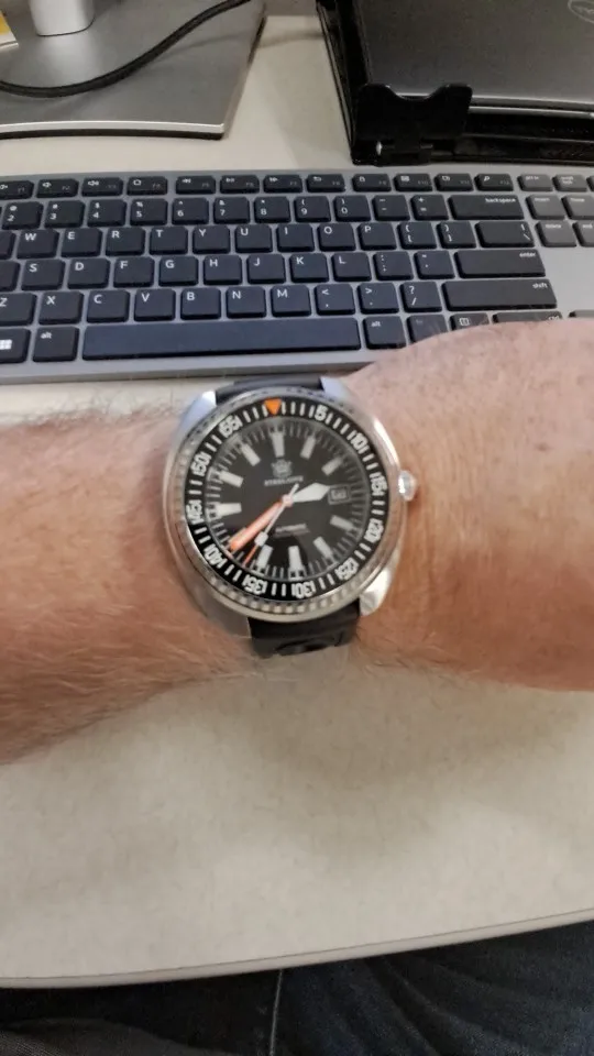 Really nice watch. Very hefty feel, but fits well on the wrist. The lum is fantastic. The watch is a little fast, but within the specs of an nh35. Love my steeldive watches. This is my 3rd.