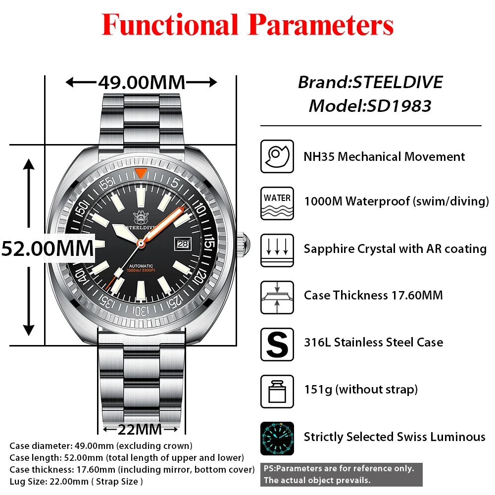 Buy SD1983 Cool Design STEELDIVE Brand 1000M Waterproof 49MM Big Size NH35 Automatic Ceramic Bezel Sapphire Dive Watches for Men at Aliexpress for .