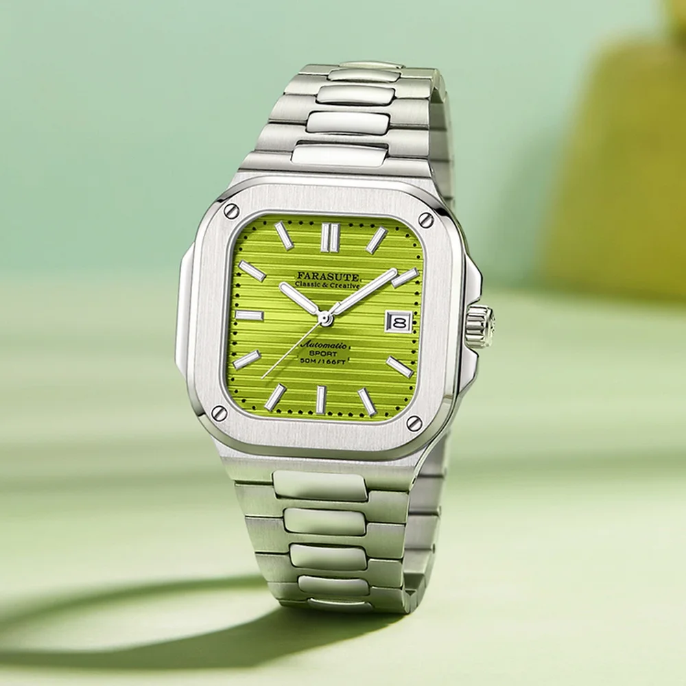Buy FARASUTE Men Automatic Watch 38mm Square Mechanical Wristwatch Ultrathin 8.9mm Case Sapphire 5ATM Waterproof Miyota 9019