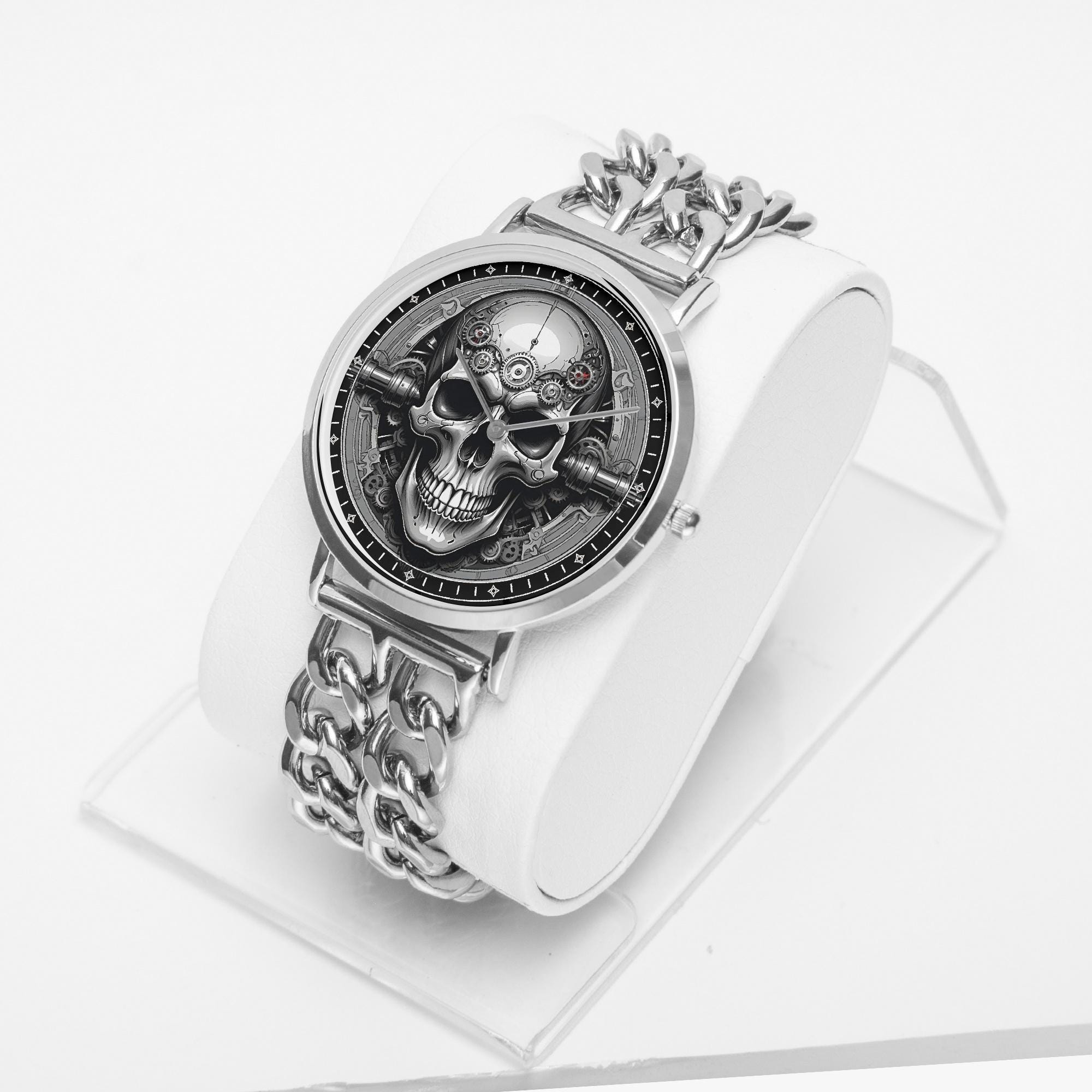 To keep your Gothic Steampunk Skull Watch looking its best, gently wipe off dust with a clean, dry microfiber cloth. This helps maintain the clarity of the glass and preserves the overall aesthetics of the watch.