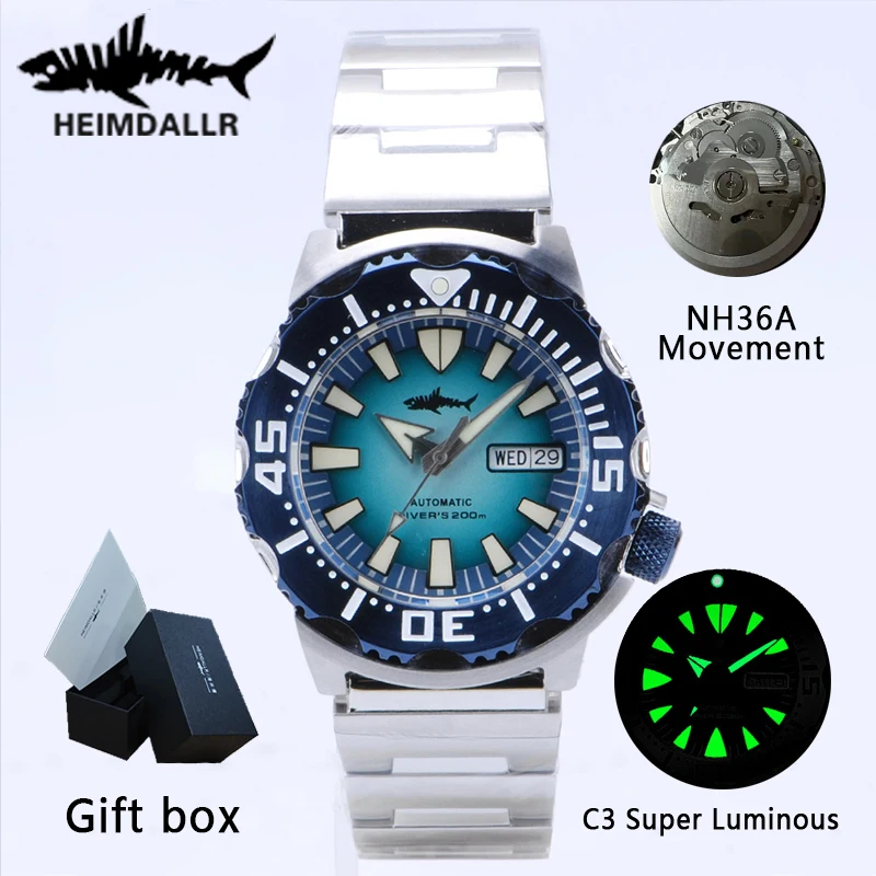 HEIMDALLR V2 Monster Men’s Automatic Diver Watch. Sapphire Crystal 20om Water Resistant. NH36A Mechanical Watch.