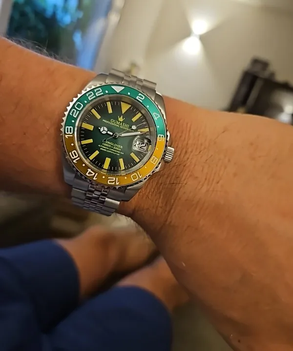 Movement Type: Automatic Self-Wind NH35 Case Material: 316L Stainless Steel with Brushed + Polished Finish Water Resistance: 10Bar (100 meters) Dial Window: Sapphire Crystal Band Material: Stainless Steel with Full Brushed Sand Strap Clasp Type: Folding Clasp with Safety **Unparalleled Precision and Durability** The Luxury NH35 Watch is a testament to precision and durability, encapsulating the spirit of the mechanical wristwatch with its automatic self-wind NH35 movement. This timepiece boasts a robust 316L stainless steel case that is not only visually appealing with its brushed and polished finish but also designed to withstand the rigors of daily wear. The watch's 10Bar water resistance depth ensures that it can accompany you in various aquatic adventures without compromising on its functionality. The sapphire crystal dial window is not only scratch-resistant but also provides excellent clarity, allowing you to admire the intricate details of the movement. **Designed for the Discerning Gentleman** The NH35 automatic watch is tailored for the discerning gentleman who values both style and functionality. The watch's 40mm diameter case, complemented by a 13mm thickness, exudes a classic yet modern aesthetic that is suitable for various occasions. The folding clasp with safety ensures a secure fit, while the stainless steel band with its full brushed sand strap offers both comfort and durability. The rotating aluminum ring bezel is not only a functional element for tracking time but also adds a touch of sophistication to the overall design. The C3 green luminescence ensures that the watch remains visible in low light conditions, making it a practical choice for those who value both style and functionality.