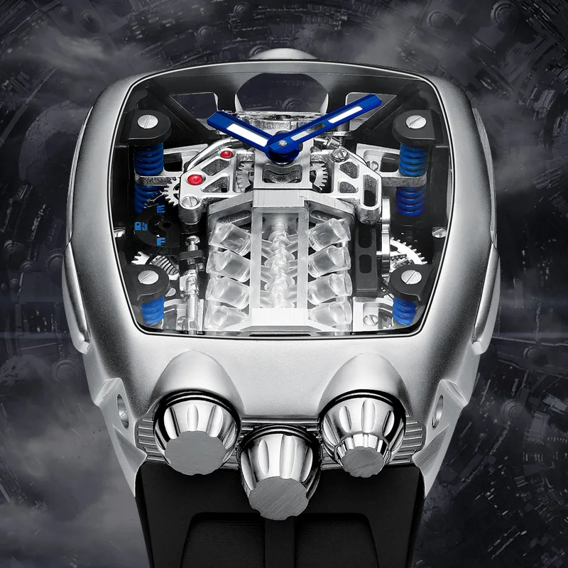 Pindu Men's Luxury Automatic Mechanical Watch. Steel Case, Silicone Strap, Analog.