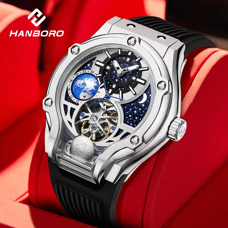 Buy HANBORO fully automatic mechanical men’s watch hollowed out wristwatch trend waterproof luminous watch